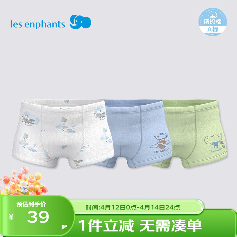 丽婴房儿童内裤纯棉内裤男女童内裤四角不夹PP中大童平角裤抗菌三条装 活力飞行-男童(5A抗菌纯棉) 3条 90 CM/2岁