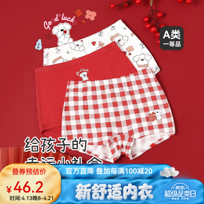 久岁伴少女童【本命年】3条7A抑菌平角内裤优可丝大红礼盒弹力吸湿透气 女生-本命年平角内裤礼盒 3条 2XL (150) 建议身高140-152,体重75-90斤