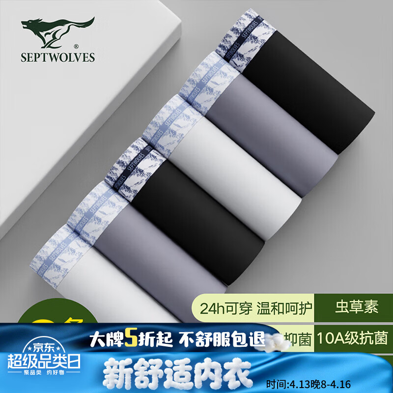 七匹狼(SEPTWOLVES)【虫草养护10A抗菌】内裤男莫代尔无痕柔软平角裤3条 礼盒装2XL