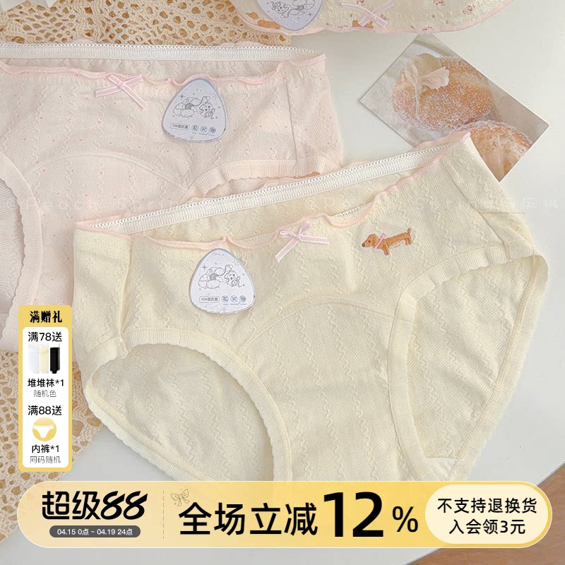 甜美少女纯棉内裤女士学生中腰提臀四季款舒适透气无痕大码三角裤