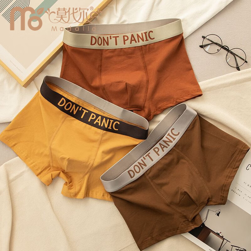 莫代尔男士内裤男平角裤纯棉透气国潮青年舒适运动四角短裤男生 棕色+桔色+黄色 3条 2XL 140-160斤