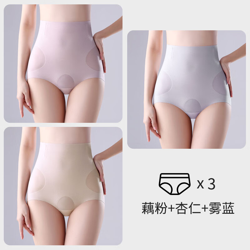 Mocseled产后收腹内裤女高腰微压刨剖腹产专用收小肚子夏季薄款月子修复裤 【3条特惠装】 藕粉+杏仁+雾蓝 3条 2XL (建议130-150斤)