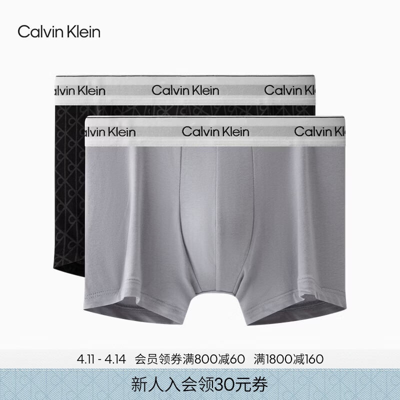 Calvin Klein内衣【田柾国同款摩登引力带】男士两条ck棉质防夹臀平角内裤男 2W3-字母黑/都市灰 2条 L