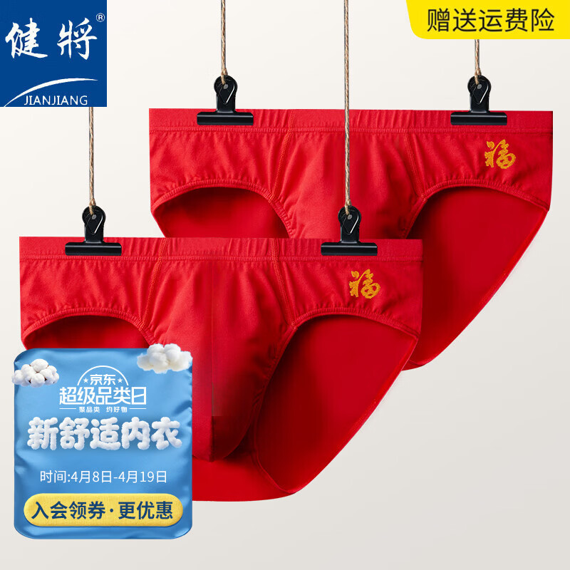 健将男士红内裤男纯棉本命年马年三角内裤福字大红色婚庆男式裤衩 2条 商场同款- 2条 3XL (腰围2.7-2.9尺 150-170斤)