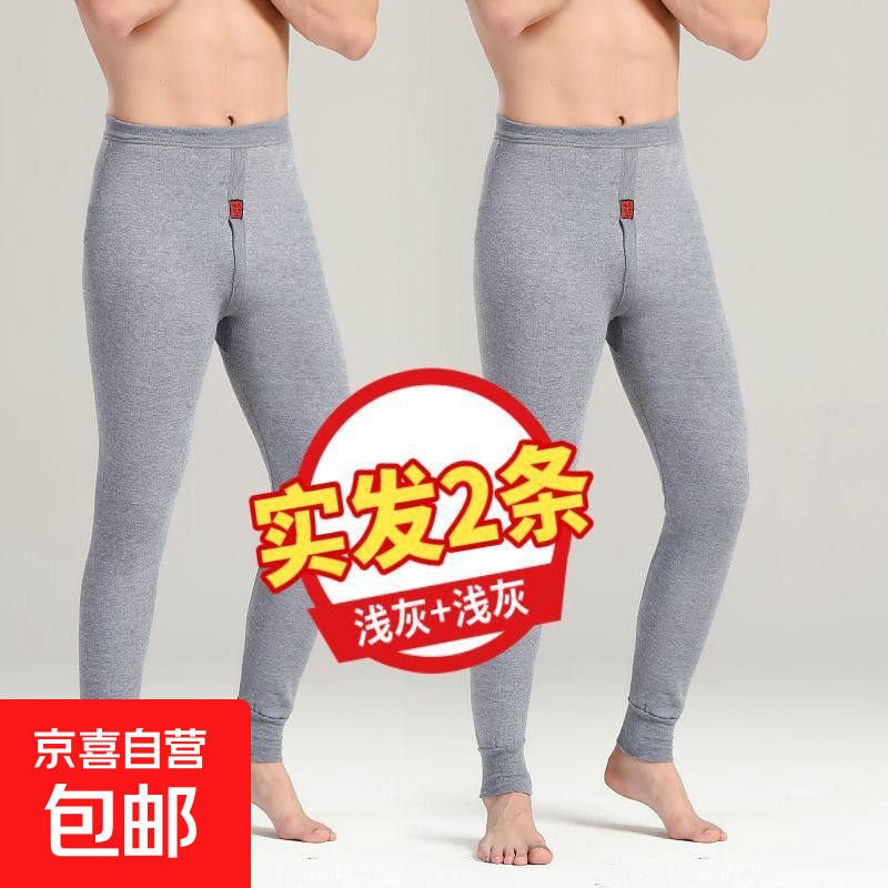 男士保暖裤加绒加厚秋裤男打底裤棉裤男冬季弹力保暖秋裤男热能裤 浅灰保暖裤+浅灰保暖裤【2条装】 3XL 大号建议155-190斤