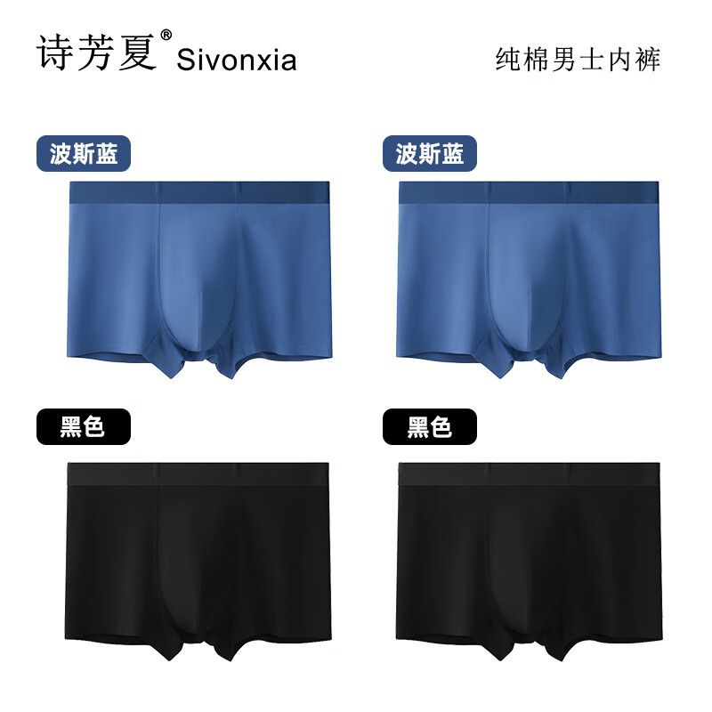 诗芳夏Faxes男士内裤四季四角裤头纯棉裆抗无痕菌透气青少年内裤 黑色*2+波斯蓝*2 3XL _【适合160-180斤】