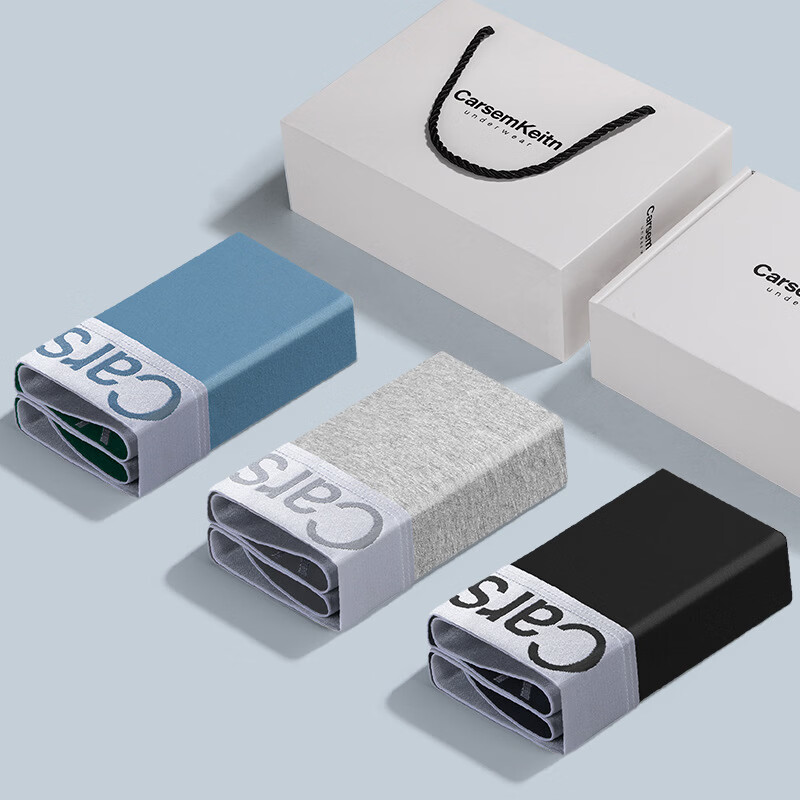 CARSEMKEITN男士内裤莫代尔CK透气舒适个性短裤头裤衩3条礼盒装 C5601白盒【天蓝+麻灰+碳黑】礼盒装 3条 2XL (135-155)