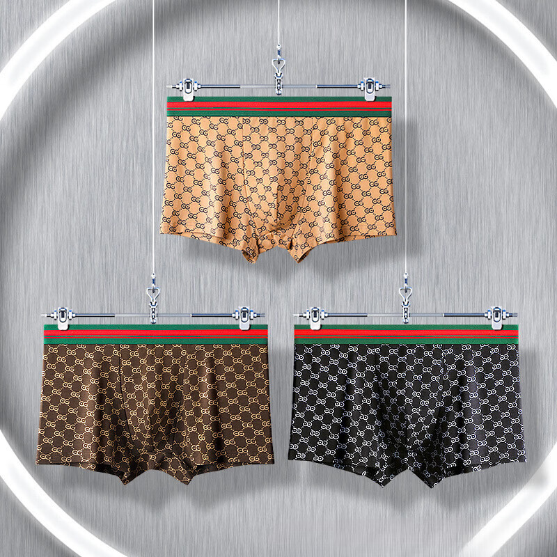 CailunKule男士内裤印花个性平角裤款ck内裤四角短裤头潮流 【浅咖+深咖+黑色】礼盒装 3条 2XL (135-155斤)