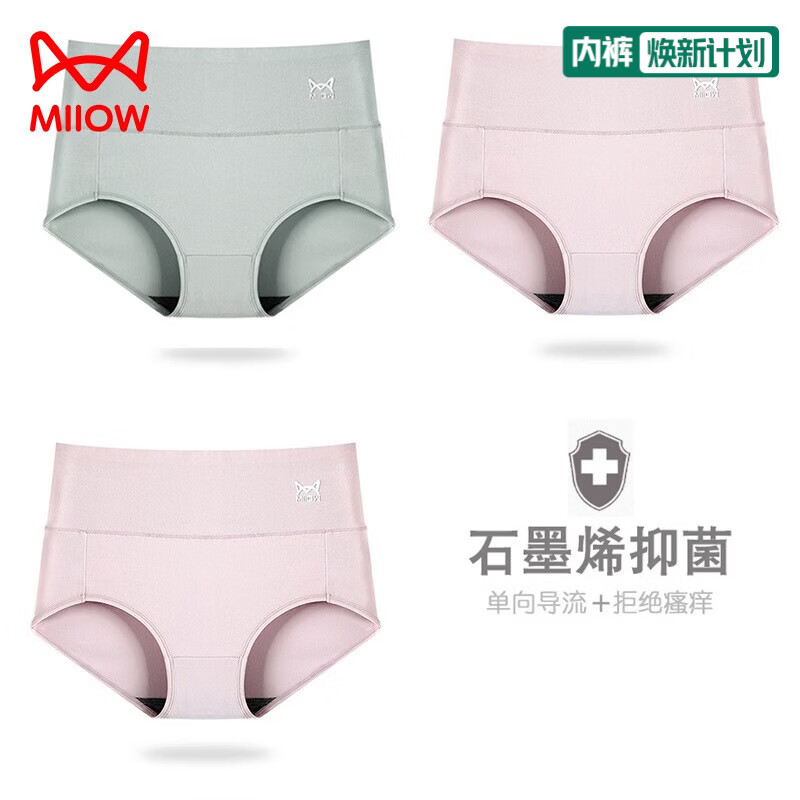猫人3条装全棉女士内裤高腰收腹提臀三角裤女士短裤头 粉色+粉色+绿色 3条 2XL (135-150斤)