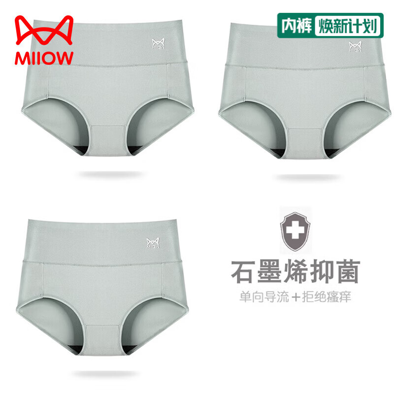 猫人3条装全棉女士内裤高腰收腹提臀三角裤女士短裤头 绿色+绿色+绿色 3条 2XL (135-150斤)