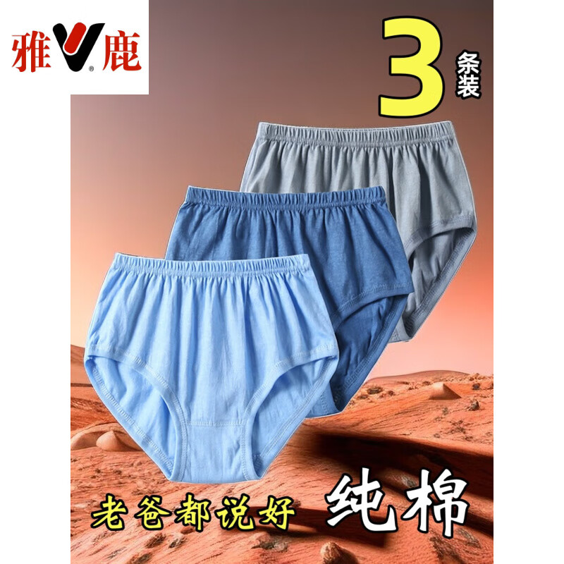 雅鹿中老年純棉内裤男爸爸三角内裤老年人大码短裤宽松純棉裤头全|棉 3条装【深蓝2+灰色1】 L 【80-95斤】