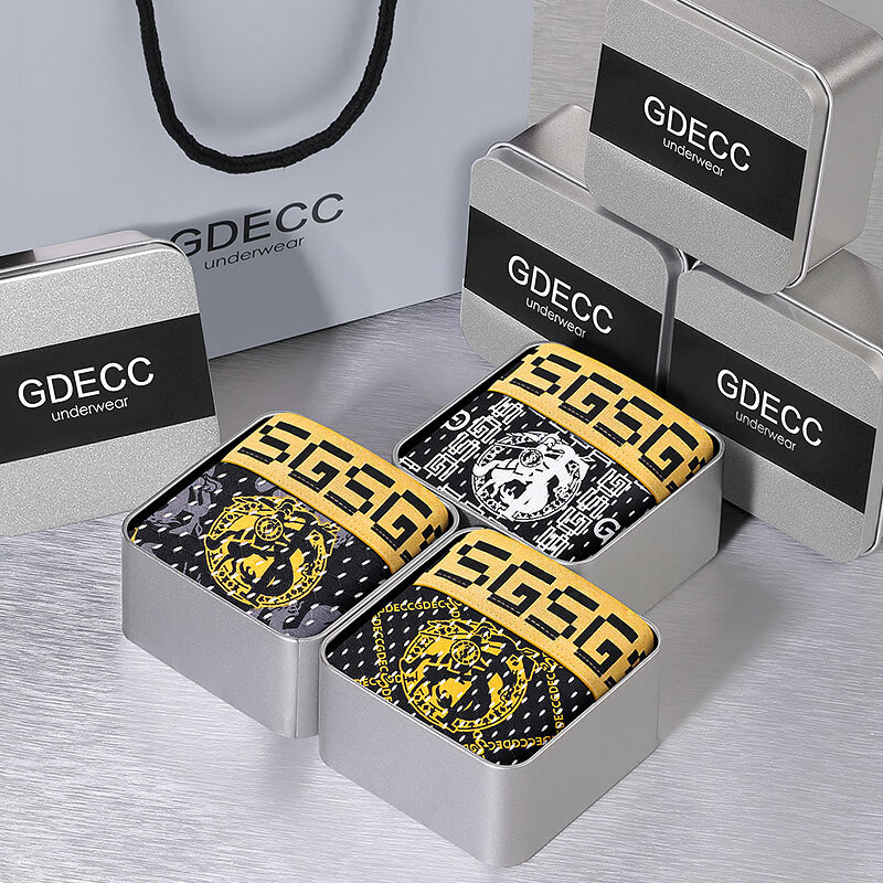 GDECC男士内裤新款冰丝透气印花平角短裤头裤衩礼盒 T450【454+453+451】礼盒装 3条 2XL (135-155)
