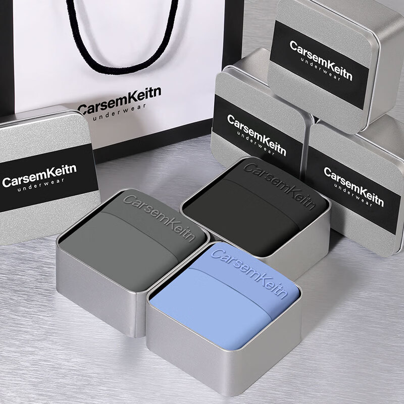 CARSEMKEITN男士内裤薄款透气个性印花CK冰丝短裤头裤衩3条马口礼盒 CT5310【碳黑色+深灰色+天青蓝】礼盒装 3条 2XL (135-155)