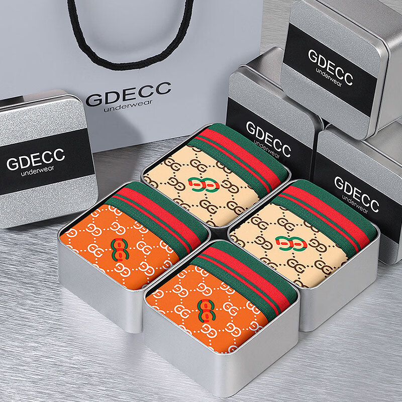 GDECC男士内裤夏季冰丝印花薄款短裤头裤衩4条马口礼盒装 T270【卡其2+爱马橙2】礼盒装 4条 3XL (155-175)