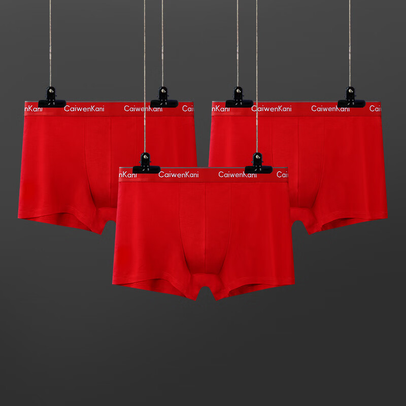CK男士内裤纯棉莫代尔平角裤男内裤石墨烯档四角裤银罐礼盒 银罐男士内裤(红、红、红) 3条 2XL _155-175斤