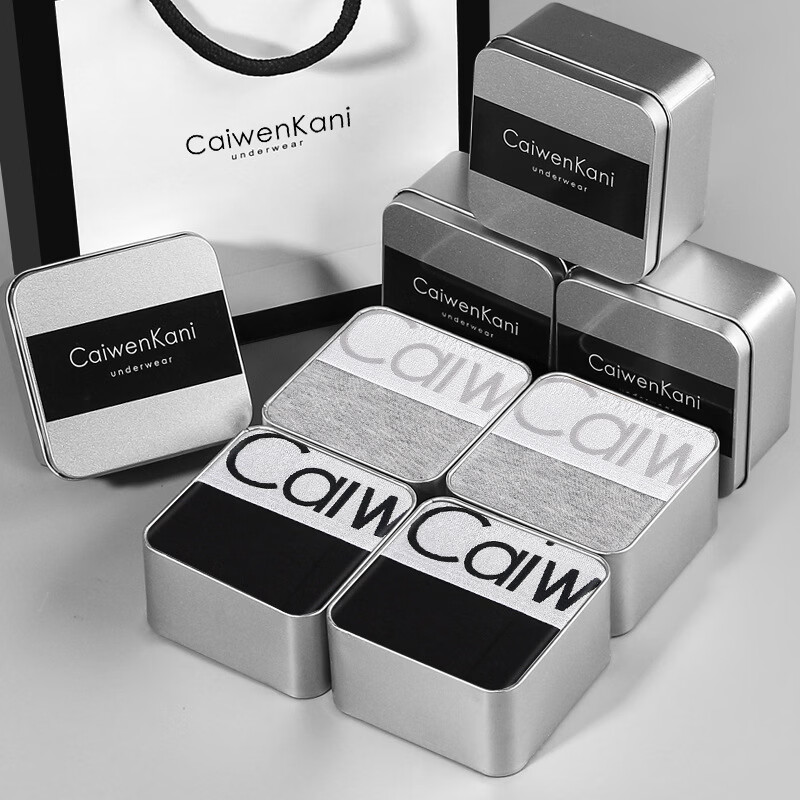 CK男士内裤纯棉莫代尔平角裤男内裤石墨烯档四角裤银罐礼盒 银罐男士内裤(黑、灰、白) 3条 2XL _155-175斤