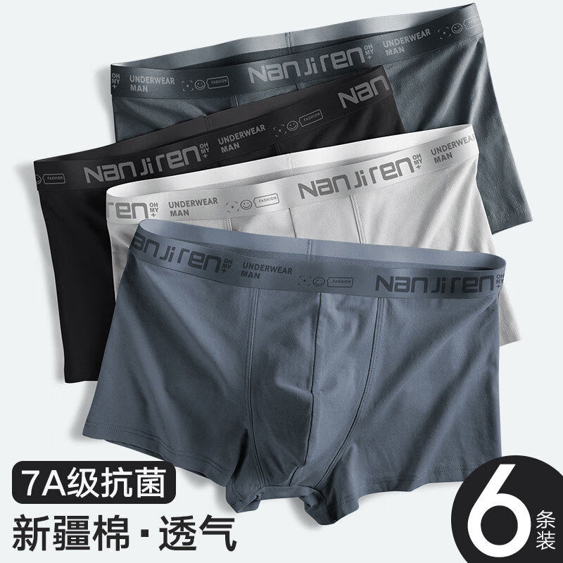 南极人男士内裤男生四角裤头裆平角短裤衩100全棉裆男款 246017A买4送2发6疆棉 3XL 3XL体重140160斤