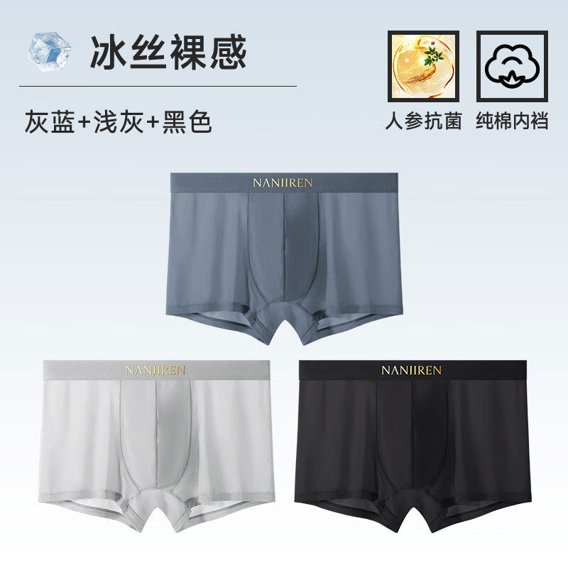 南极人内裤男士冰丝四角裤男生平角短裤头裆男款2025款 26020灰浅灰黑色轻奢高独立装3 2XL 2XL体重145165斤