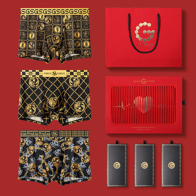 GDAD男士内裤夏季透气冰丝印花短裤头裤衩礼物送礼礼盒 S260情人节礼盒【261+262+264】装 3条 2XL (135-155)