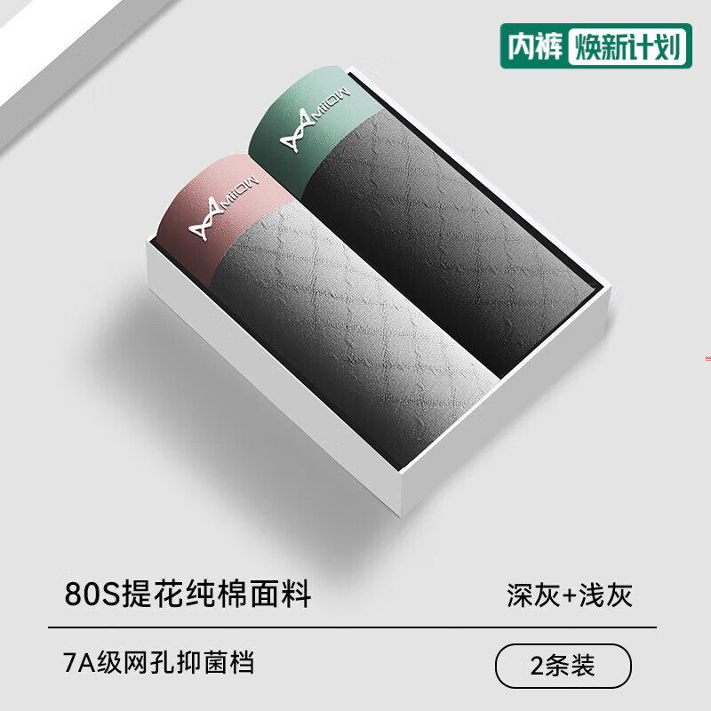 猫人男士内裤纯棉提花男生无痕四角裤头运动透气不卡裆平角短裤衩 深灰+浅灰 2条 3XL 推荐160-180斤