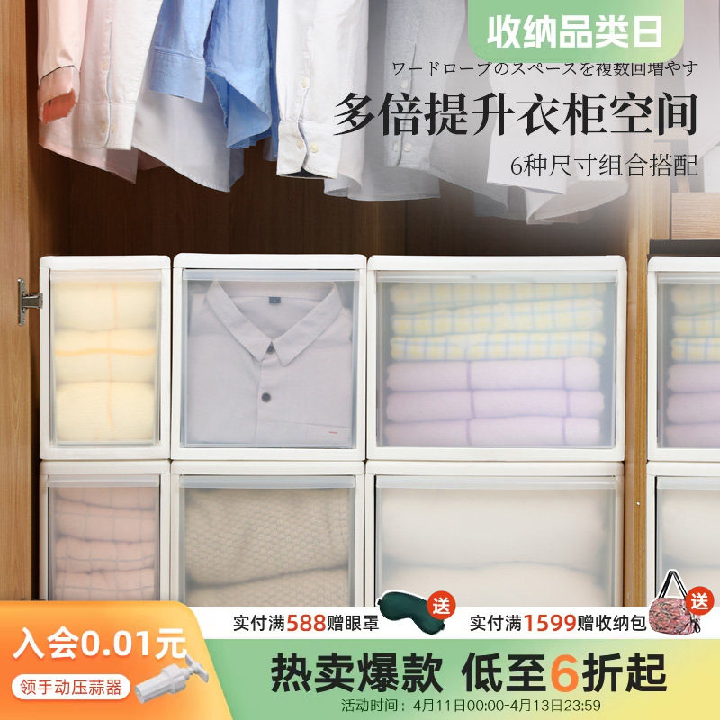 利快进口收纳箱日本抽屉式成衣内裤收纳盒家用塑料衣柜杂物整理箱