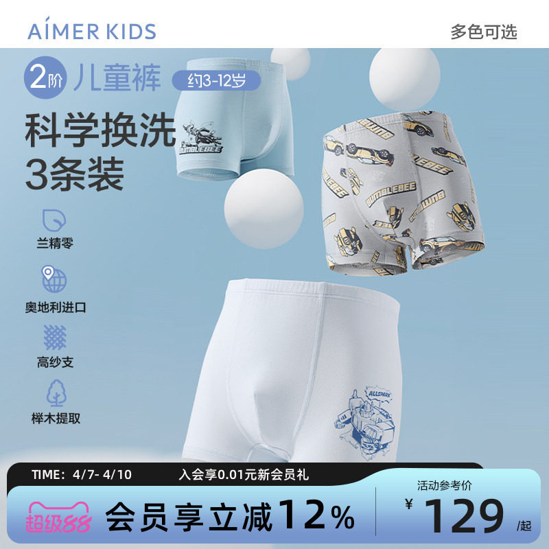 爱慕儿童宝宝抗菌平角裤儿童内裤女童男童莫代尔内裤男童中大童