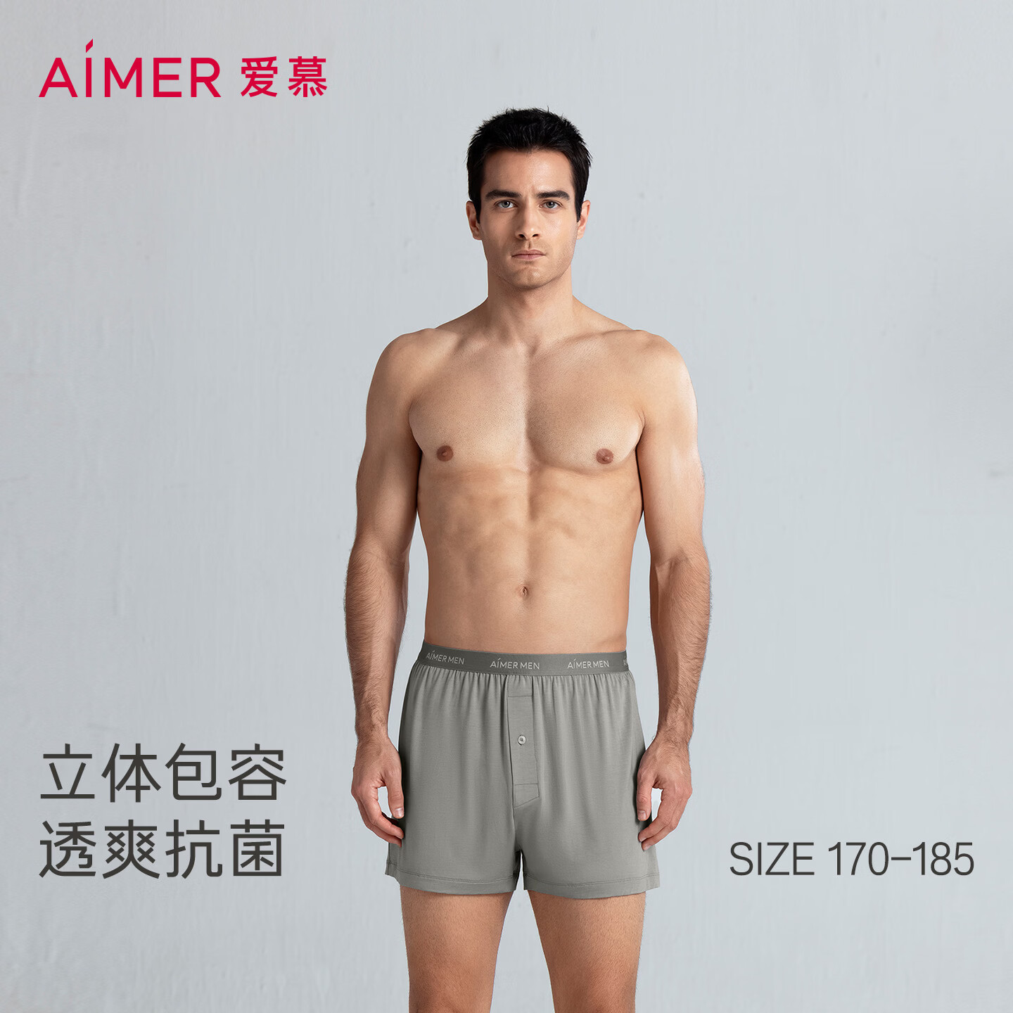 爱慕先生内裤男透气抗菌舒适莫代尔HELLO系男士内裤四角裤单件/2件包可选 灰色50Y - 1条 3XL 185