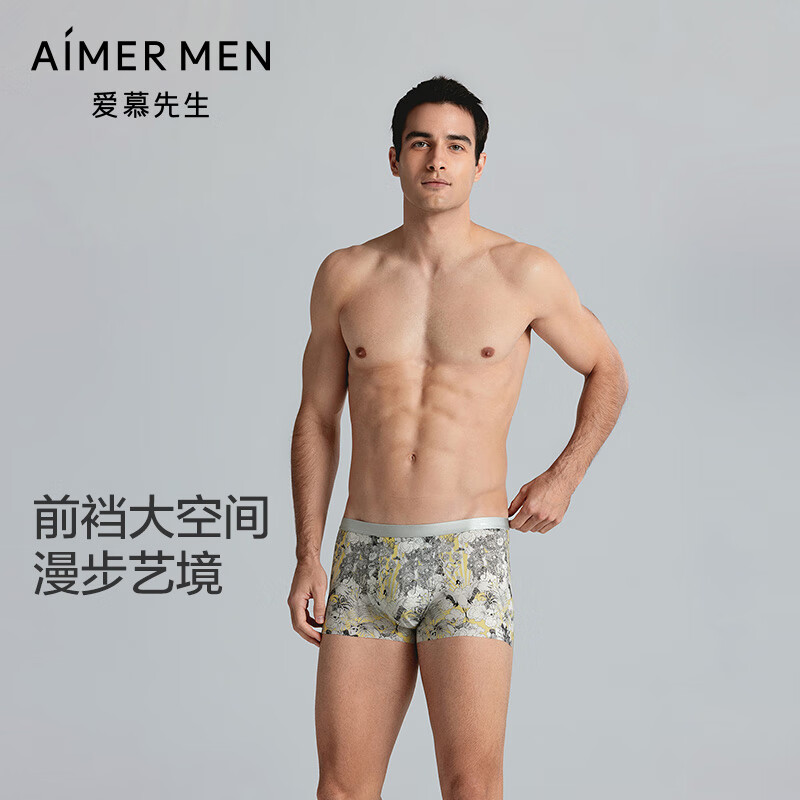 爱慕先生内裤男士【专利U型裤】前裆大空间薄速干透气不易卷边男士内裤 奇幻森林黄YH2 1条 3XL 185