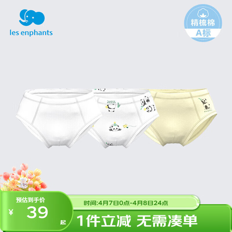 丽婴房(Les enphants)儿童内裤男女童内裤四角不夹PP中大童平角裤三角纯棉纯内裤三条装 熊猫滚滚系列-三角 3条 90 CM/2岁