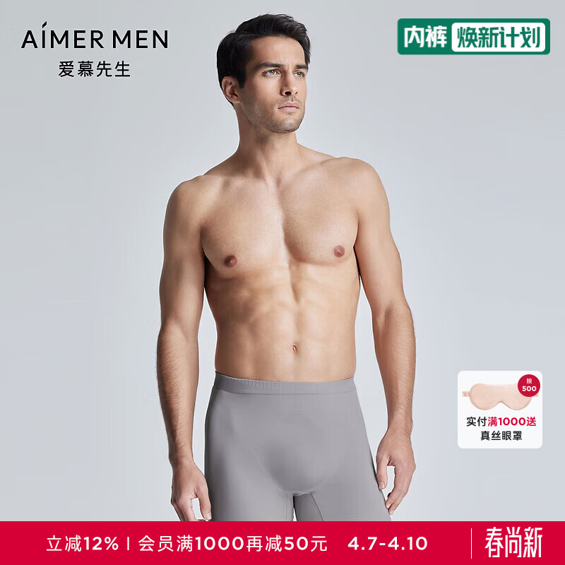 爱慕先生内裤男士24SS无缝一体织3DU型裤平角裤内裤男士NS23L201 浅灰55B 2XL (180)