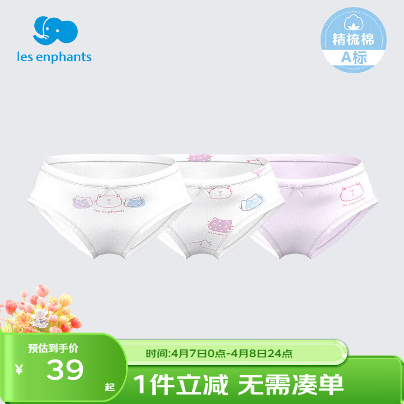 丽婴房(Les enphants)儿童内裤男女童内裤四角不夹PP中大童平角裤三角纯棉纯内裤三条装 波点猫咪系列-三角 3条 90 CM/2岁