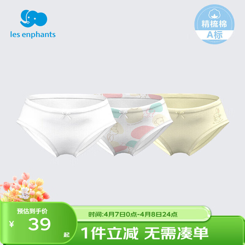 丽婴房(Les enphants)儿童内裤男女童内裤四角不夹PP中大童平角裤三角纯棉纯内裤三条装 兔子星球系列-三角 3条 90 CM/2岁