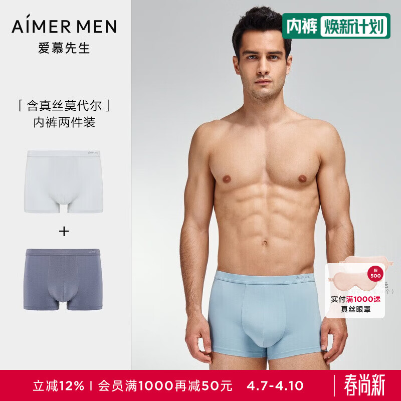 爱慕先生23SS丝享内裤两件装装腰平角裤男士内裤NS23J971 银川灰+雾兰色ZS1 2条 3XL (185)
