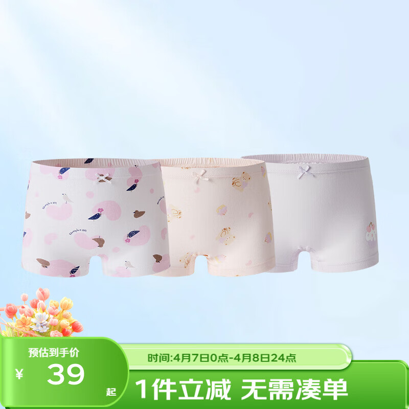 丽婴房(Les enphants)儿童内裤男女童内裤四角不夹PP中大童平角裤三角纯棉纯内裤三条装 【100%棉】小熊软糖-平角女童 【裆底10A抗菌】 3条 90 CM/2岁