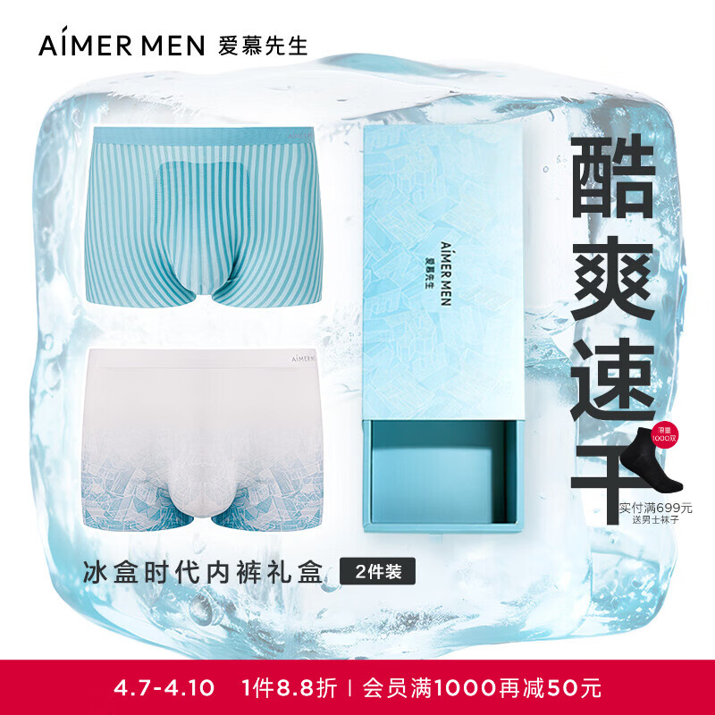 爱慕先生【凉感大空间2件礼盒装】夏季冰丝抗菌透气净痕2件内裤男 冰河绿条纹/冰河绿渐变ZS2 2条 3XL