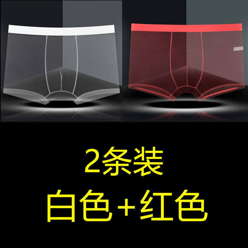 OUOETY内裤男士2026男士生肖年红色透明裸色性感蕾丝网冰丝透气四角内裤 透透红色+白色 2条 3XL (140-159斤内)
