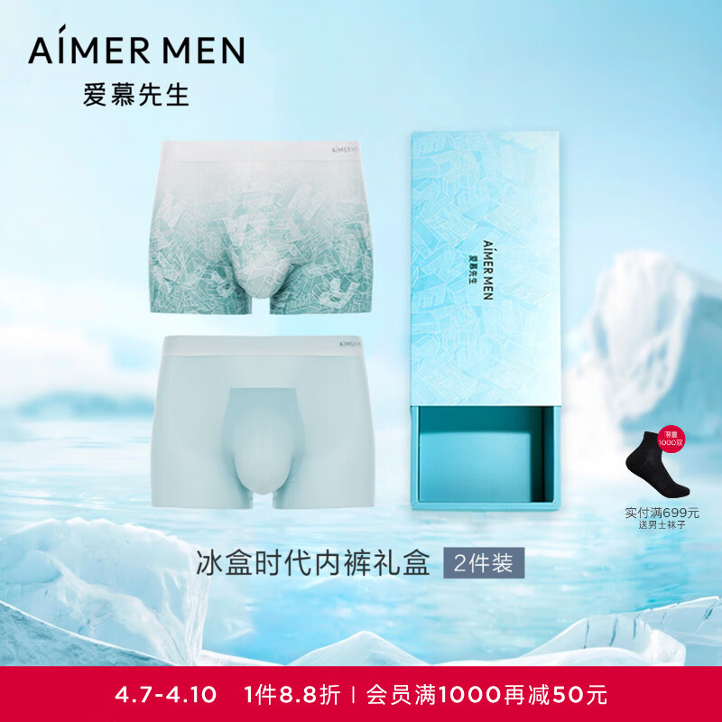 爱慕先生【凉感大空间2件礼盒装】夏季冰丝抗菌透气净痕2件内裤男 湖蓝素色+印花ZS3 2条 4XL