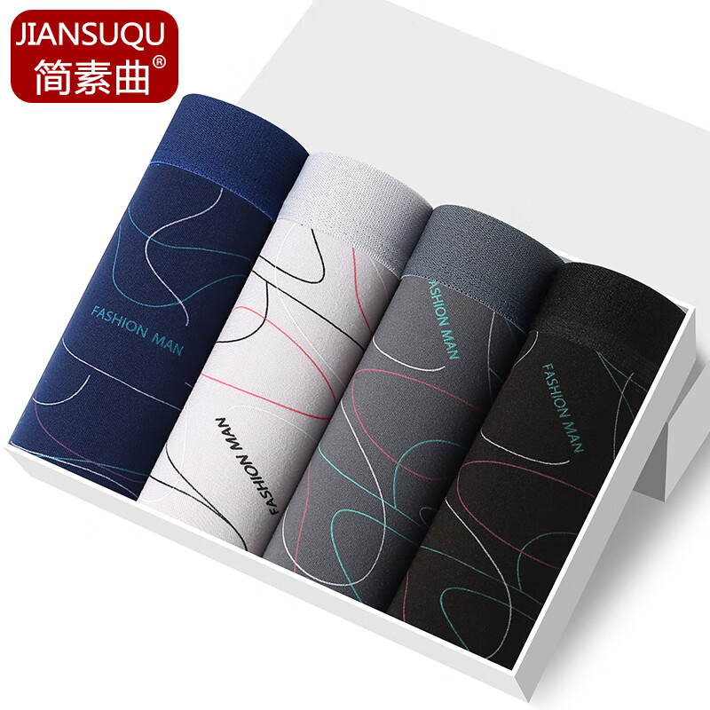 简素曲(JIANSUQU) 时尚深色曲线男士内裤个性潮流平角裤舒适亲肤四角裤高弹男内裤 【颜色随机】 搭配装 2条 3XL (140-165斤)
