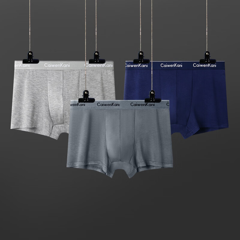 CK男士内裤纯棉莫代尔平角裤银罐礼盒装石墨烯档四角裤 银罐男士内裤(灰、蓝、中灰) 3条 2XL _155-175斤