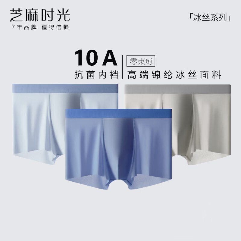 芝麻时光男士内裤男平角裤冰丝10A抗菌内档宽松男生四角短裤头春夏季薄款 混色 3条 2XL 建议130-150斤