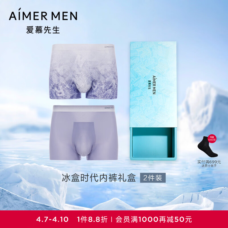 爱慕先生【凉感大空间2件礼盒装】夏季冰丝抗菌透气净痕2件内裤男 紫色素色+印花ZS4 2条 3XL