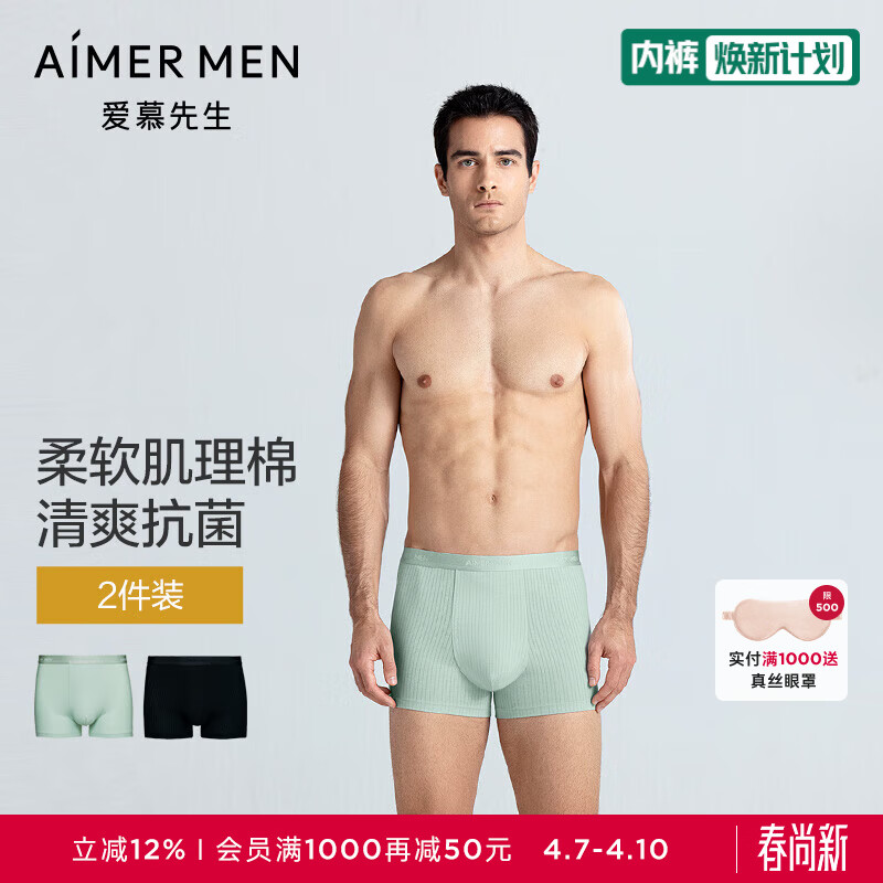 爱慕先生春夏肌理棉内裤男士棉质舒适装腰平角裤NS23M351 莺歌绿+水墨灰ZS2 2条 3XL 185