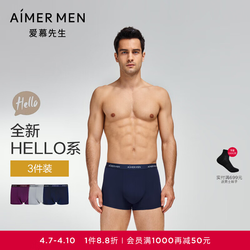 爱慕先生【3条装】透气抗菌50S莫代尔HELLO系列男士时尚平角内裤NS23C233P 深蓝色+深紫色+灰色ZS3 - 3条 2XL 180