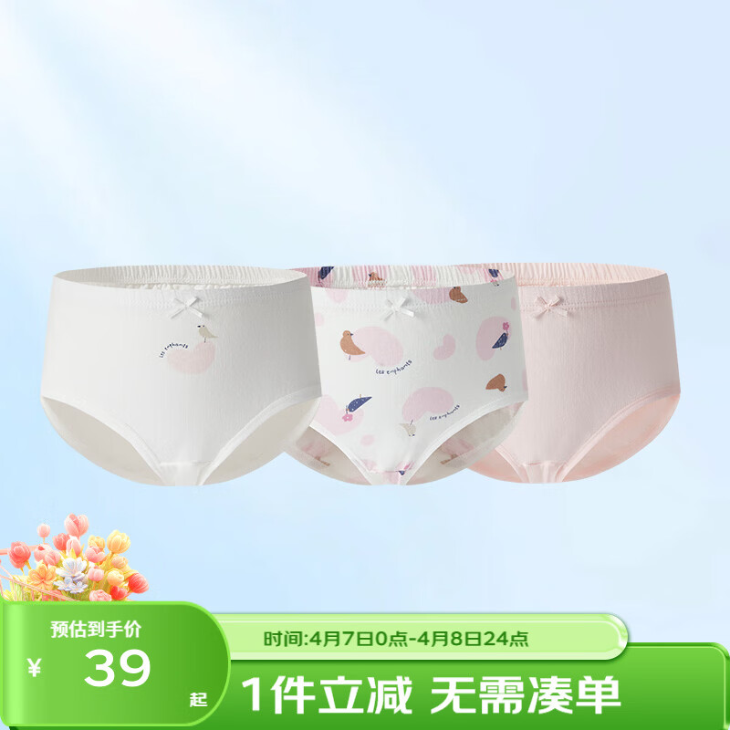 丽婴房(Les enphants)儿童内裤男女童内裤四角不夹PP中大童平角裤三角纯棉纯内裤三条装 【100%棉】巴黎鸟语-三角女童 【裆底10A抗菌】 3条 90 CM/2岁