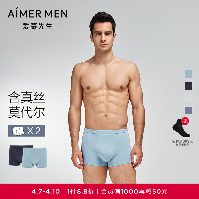 爱慕先生【含真丝2件装】含桑蚕丝莫代尔立体版型抗菌男士内裤NS23J971 浪花青+暗夜蓝ZS2 2条 3XL 185