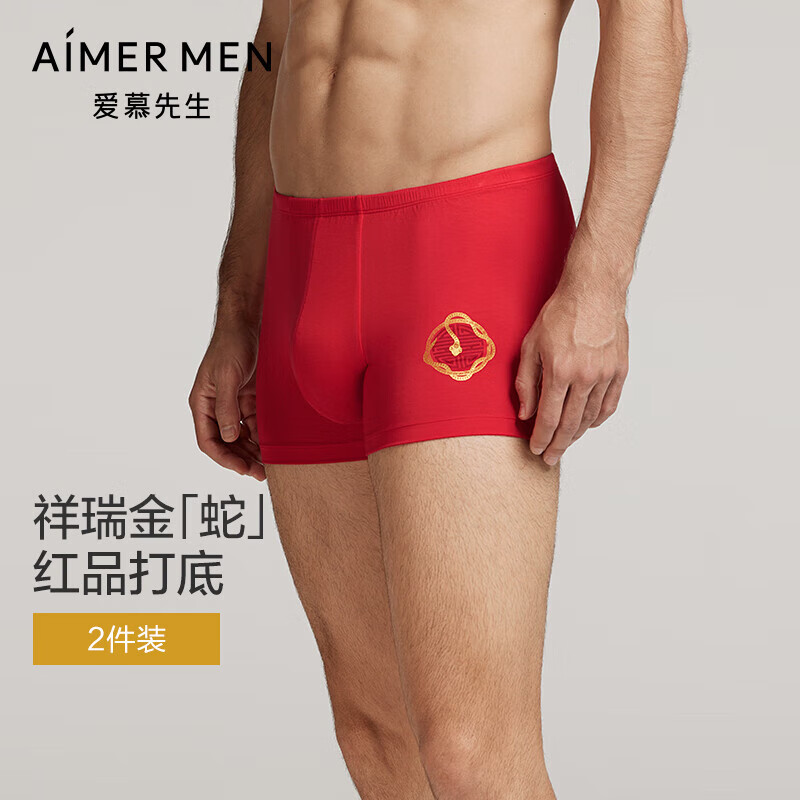 爱慕先生(AIMER MEN)【两条装】头顶金钱蛇身披幸运草本命年红内裤两件包莫代尔内裤男 红色 2条 3XL 185