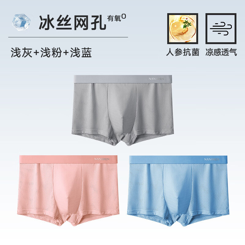 南极人内裤男士冰丝网孔四角短裤头男款男生平角夏季2025新款 25009_浅灰_浅粉_浅蓝10A级人参裆___3 2XL _140-160斤