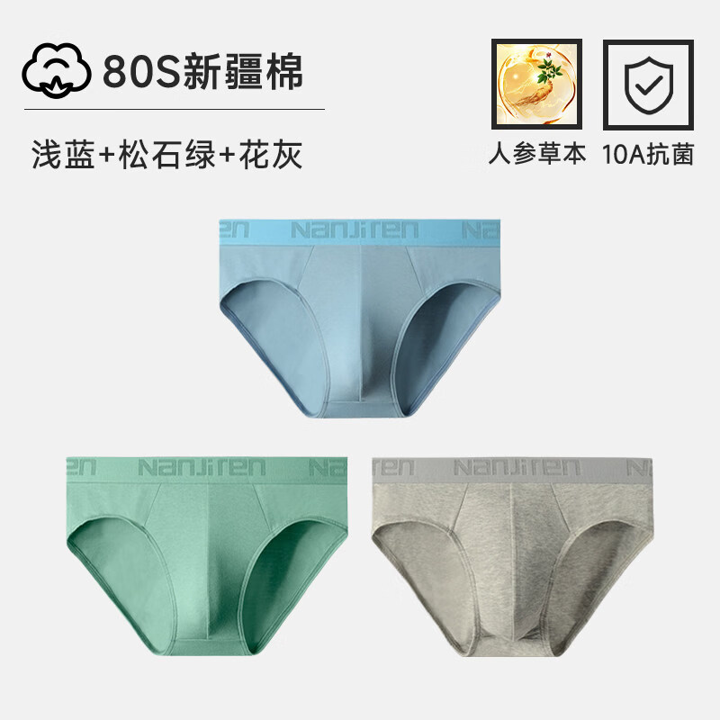 南极人内裤男士三角棉透气短裤底裤衩子男生青少年男款2026新款 80S棉+人参松石绿+浅蓝+花灰 3条 2XL _140-160斤