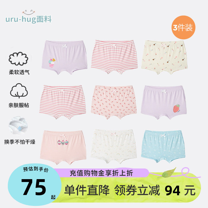 千趣会童装夏装儿童短裤uru-hug面料亲肤保湿女童平角内裤3条装