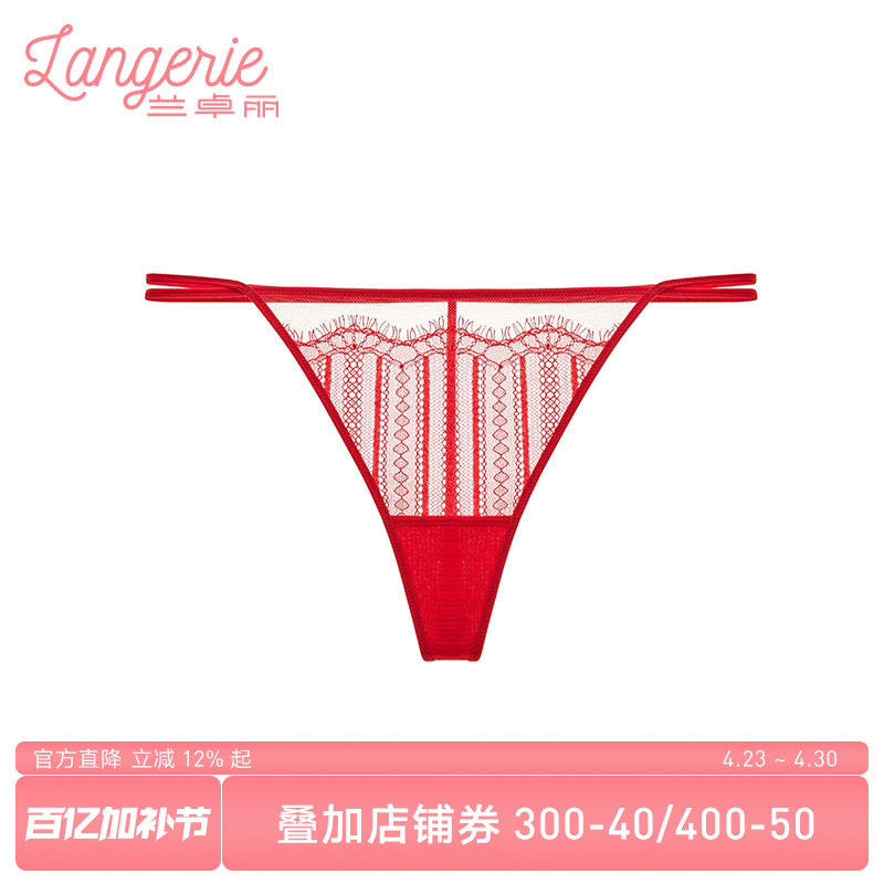 兰卓丽本命年红色T字裤女内裤纯棉底裆中低腰丁字裤性感蕾丝短裤